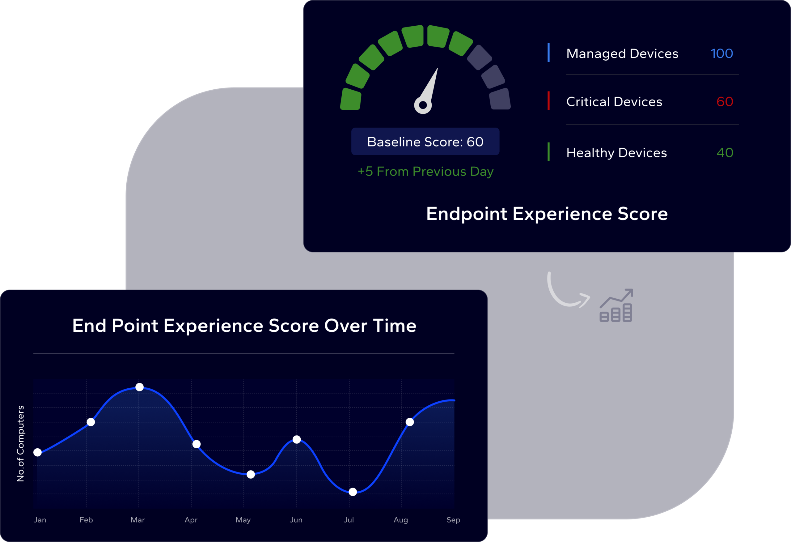 Monitor endpoint and app performance and employee sentiment to uncover actionable insights about digital employee experience (DEX), and self-heal issues proactively.