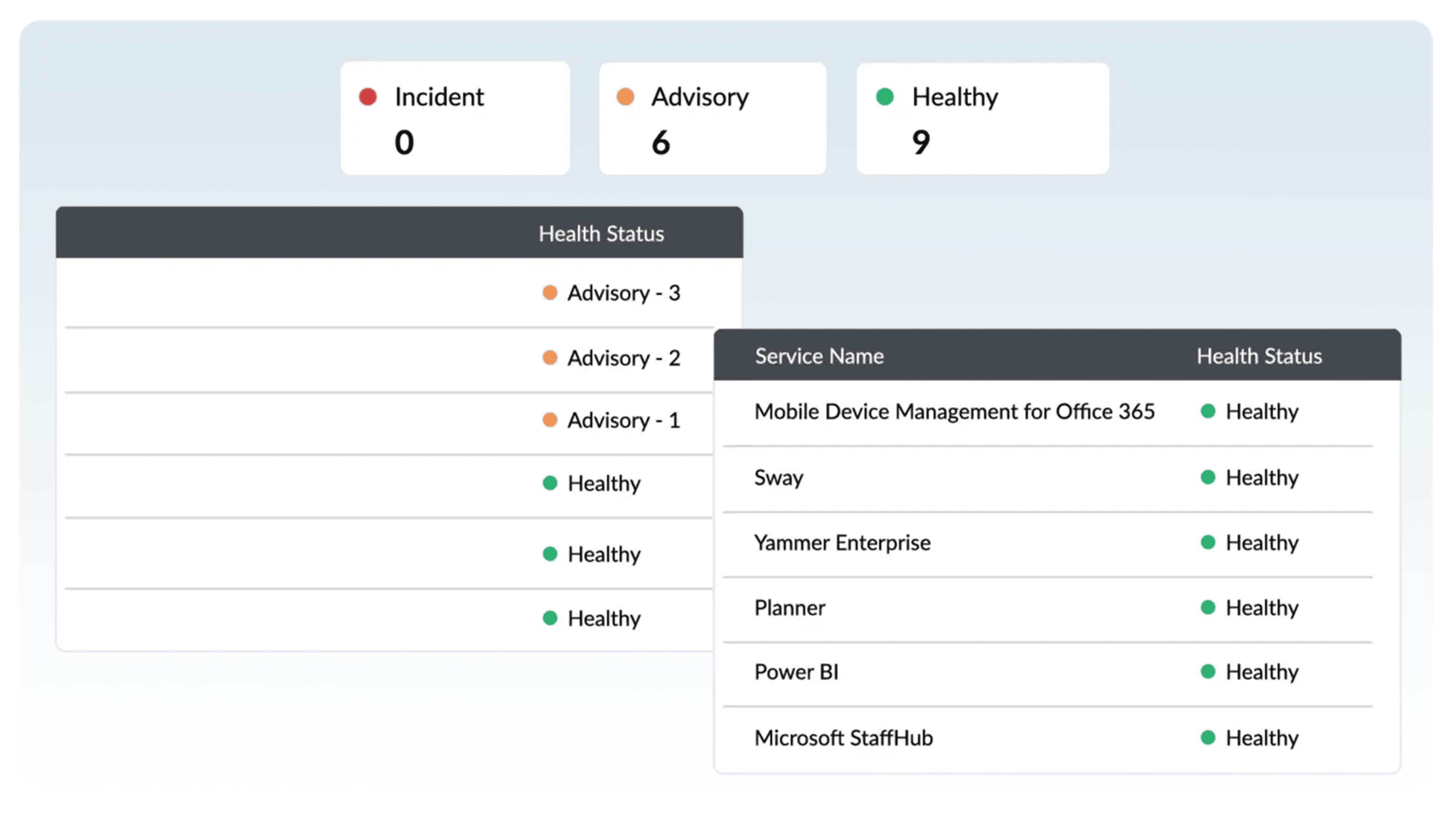 Monitor the health of Exchange Online, Azure Active Directory, OneDrive for Business, Skype for Business, and other major Microsoft 365 services around the clock from one, central location.